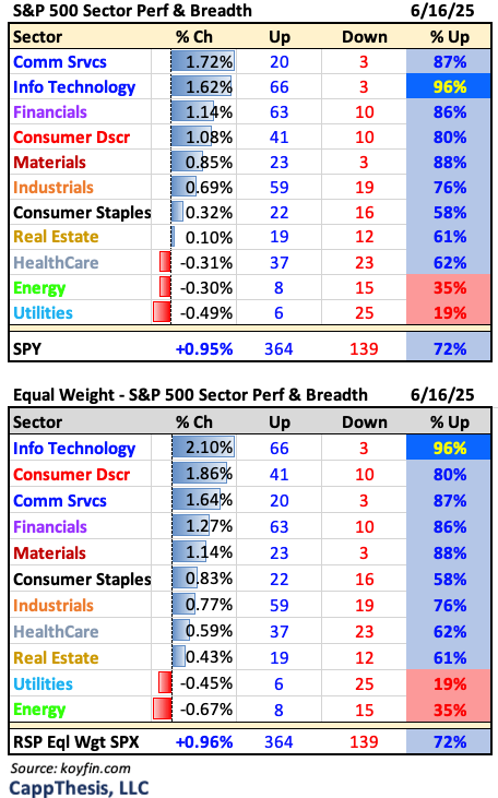 Yesterday’s sector performance and breadth statistics tell us that it was a risk-on session, with leadership from the growth sectors and financials. Energy took a breather, but Crude is trading higher again this morning.