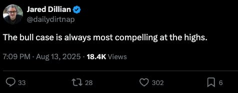 Jared Dillian of The Daily Dirtnap reminded jubilant bulls last night: