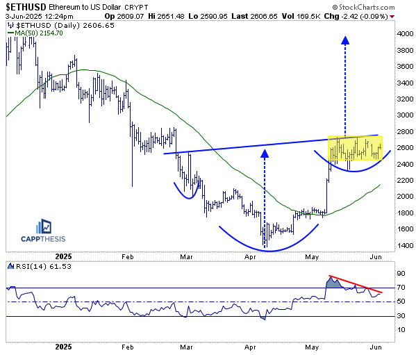The good news is that Ethereum has held up better over the last week than Bitcoin. But so far, it, too, has yet to break out from what could be a substantial bullish inverse H&S pattern.