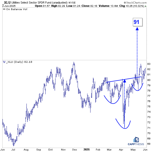 XLU is up pre-market off of news. We profiled this potential inverse head & shoulders pattern last Friday. It measures all the way up to 91 should this current breakout attempt hold.