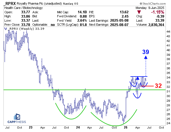 3-Zooming way out, it’s clear that RPRX has potentially a lot more ground to make up. Its high was 56.50 in 2020, a few days after its IPO.