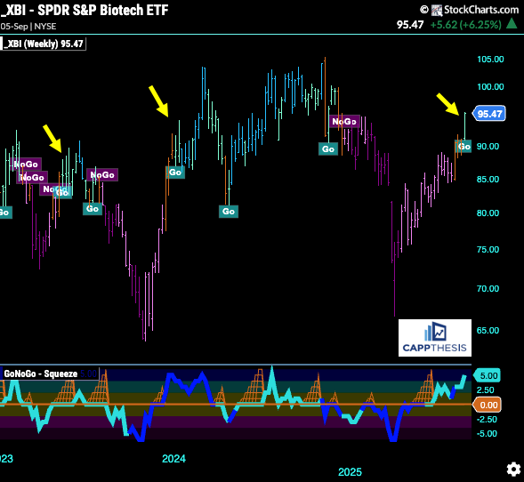 Last week’s move flipped the weekly GoNoGo trend from neutral to bullish, which is obviously a step in the right direction. That said, we can see that this indicator has produced false signals before—most notably in 2023 (highlighted by the yellow arrows)—so it’s something we can’t fully rely upon…